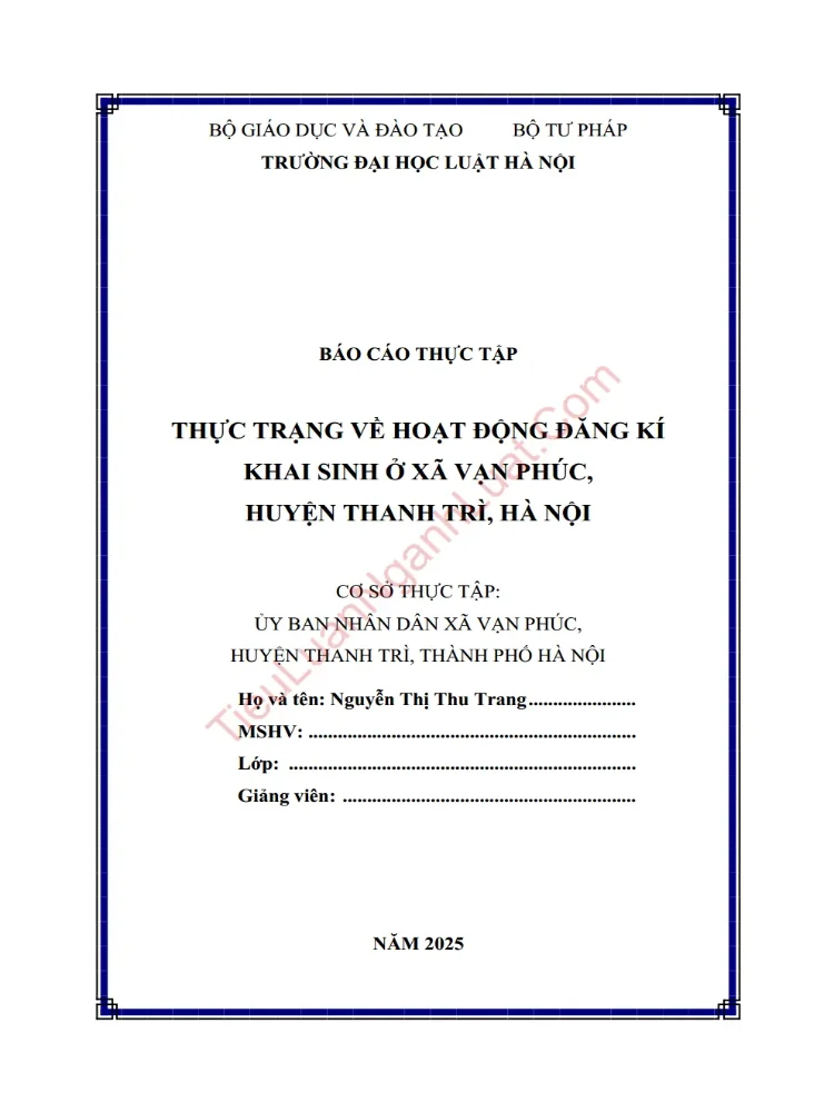 Nhận thức được tầm quan trọng của vấn đề về khai sinh tại UBND xã, sinh viên đã lựa chọn đề tài Thực trạng về hoạt động đăng kí khai sinh ở xã Vạn Phúc, huyện Thanh Trì, Hà Nội làm chuyên đề thực tập để đi vào nghiên cứu và tìm hiểu trong thực tiễn.