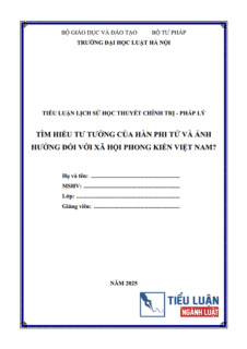 [Tiểu luận 2025] Tư tưởng của Hàn Phi Tử và ảnh hưởng của nó đối với xã hội phong kiến Việt NamNgày đăng: 09/01/2025 Người đăng: Phạm Văn ThànhTHÔNG TIN TIỂU LUẬNTrường: Đại học Luật Hà NộiĐịnh dạng: WORDSố trang: 30 trang (Không bao gồm bìa, Mục lục)Năm: 2025 / Mã số: B0523.