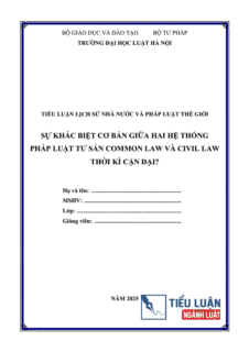 [Tiểu luận 2025] Sự khác biệt cơ bản giữa hai hệ thống pháp luật tư sản Common Law và Civil Law thời kì cận đạiNgày đăng: 09/01/2025 Người đăng: Phạm Văn ThànhTHÔNG TIN TIỂU LUẬNTrường: Đại học Luật Hà NộiĐịnh dạng: WORDSố trang: 24 trang (Không bao gồm bìa, Mục lục)Năm: 2025 / Mã số: B0522.