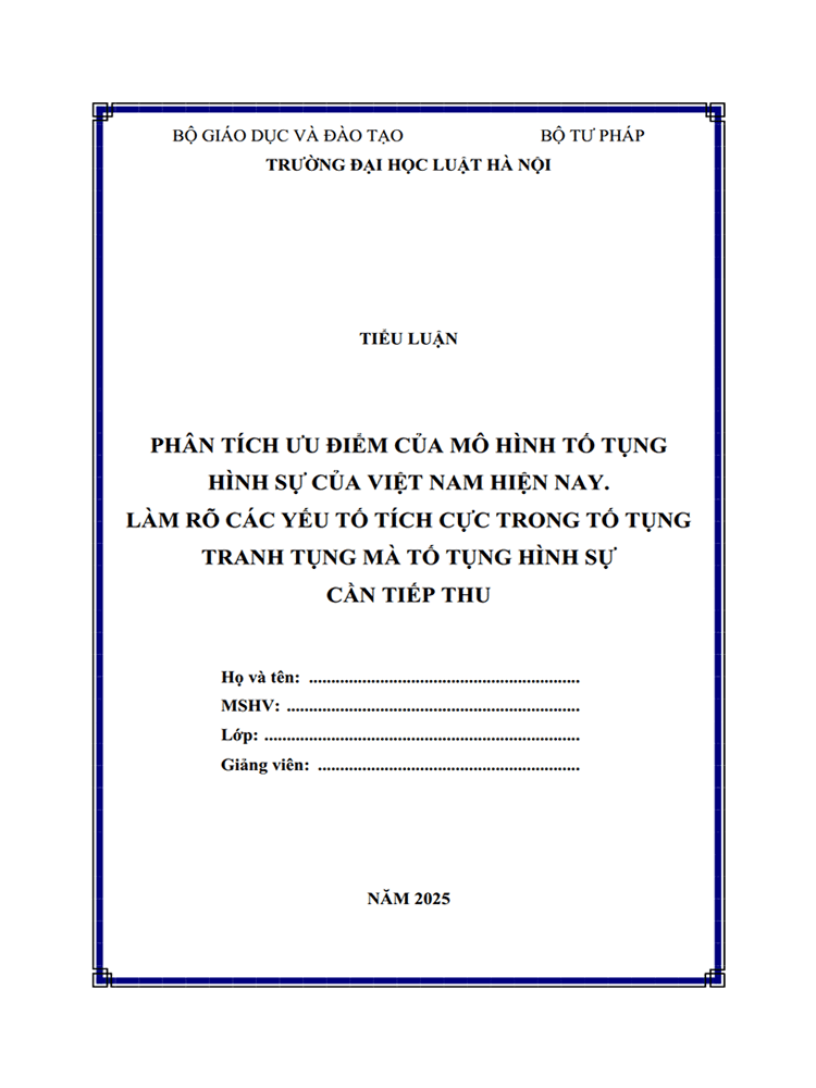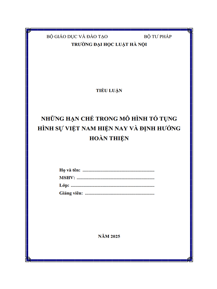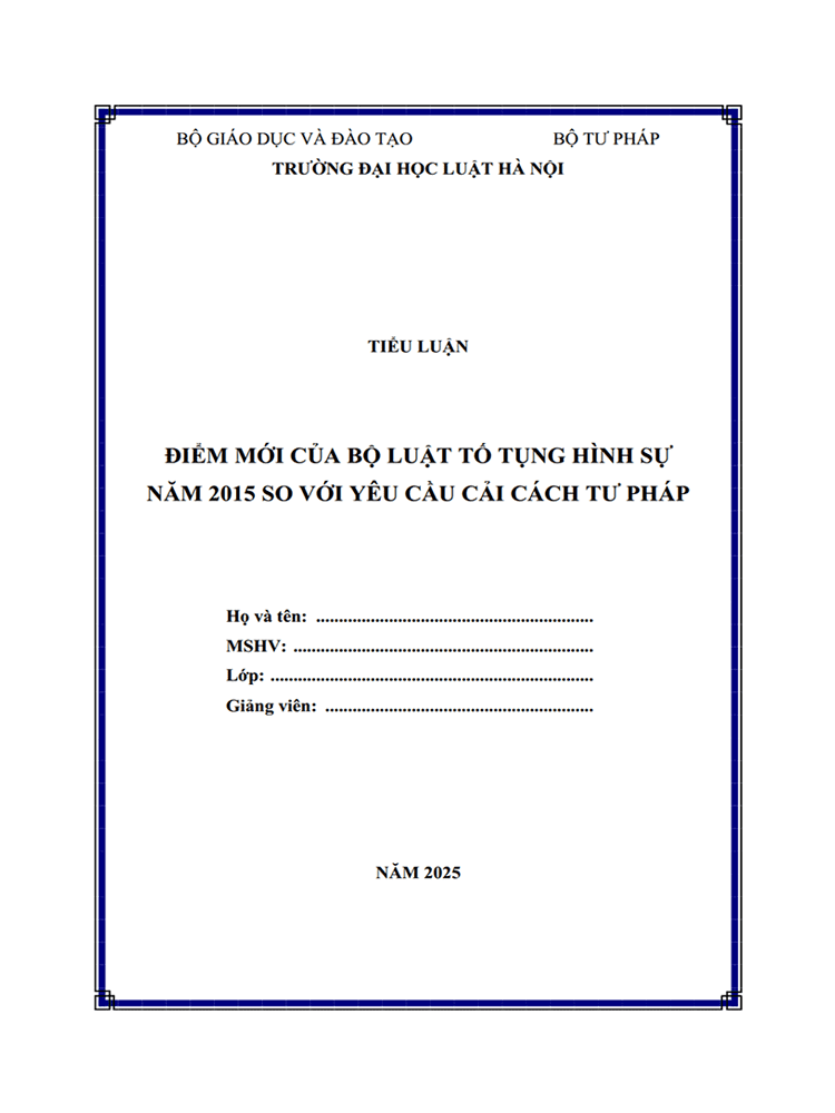 Chuyên mục Tiểu luận Những vấn đề hiện đại về Luật tố tụng hình sự phân tích tranh tụng tại phiên tòa, chứng cứ điện tử và bảo vệ người làm chứng. Các đề tài mang tính cập nhật cao theo xu hướng cải cách tư pháp.