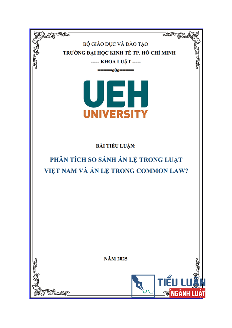 [Tiểu luận 2025] Phân tích so sánh án lệ trong Luật Việt Nam và án lệ trong Common LawTHÔNG TIN TIỂU LUẬNTrường: Đại học Luật Hà NộiĐịnh dạng: WORDSố trang: 07 trang (Không bao gồm bìa, Mục lục)Năm: 2025 / Mã số: B0533.