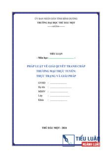 [Tiểu luận 2024] Pháp luật về giải quyết tranh chấp thương mại trực tuyến – Thực trạng và giải phápNgày đăng: 22/12/2024 Người đăng: Phạm Văn ThànhTHÔNG TIN TIỂU LUẬNTrường: Đại học Luật Thủ Dầu MộtĐịnh dạng: WORDSố trang: 13 trang (Không bao gồm bìa, Mục lục)Năm: 2024 / Mã số: B0434.