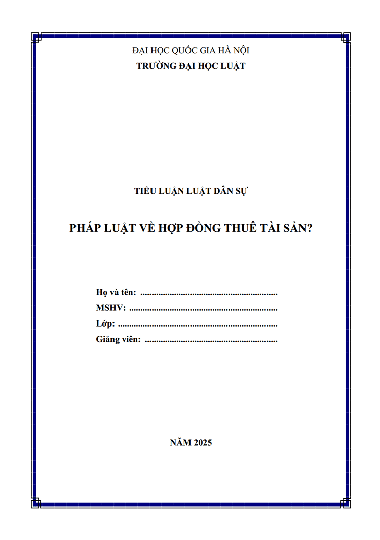 [Tiểu luận 2025] Hợp đồng thuê tài sảnTHÔNG TIN TIỂU LUẬNTrường: Đại học Luật – Đại học Quốc gia Hà NộiĐịnh dạng: WORDSố trang: 28 trang (Không bao gồm bìa, Mục lục)Năm: 2025 / Mã số: B0862.