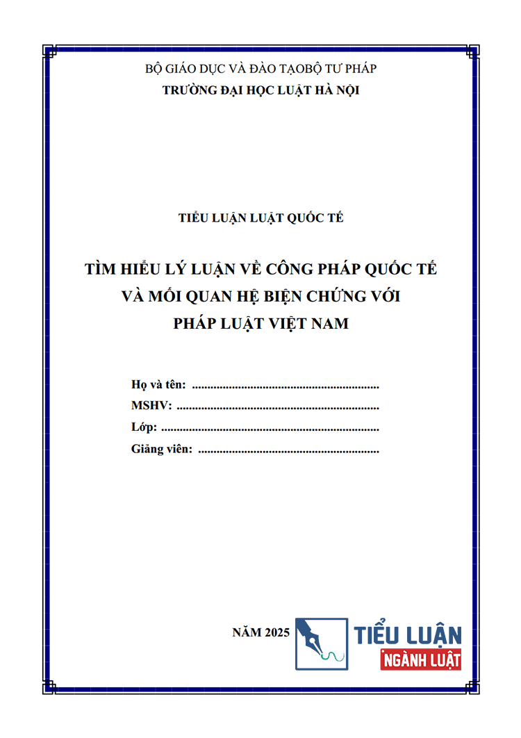 [Tiểu luận 2025] Lý luận về công pháp quốc tế và mối quan hệ biện chứng với pháp luật Việt NamTHÔNG TIN TIỂU LUẬNTrường: Đại học Luật Hà NộiĐịnh dạng: WORDSố trang: 31 trang (Không bao gồm bìa, Mục lục)Năm: 2025 / Mã số: B0689.