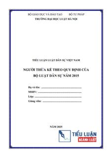 [Tiểu luận 2025] Người thừa kế theo Bộ luật Dân sự năm 2015Ngày đăng: 09/01/2025 Người đăng: Phạm Văn ThànhTHÔNG TIN TIỂU LUẬNTrường: Đại học Luật Hà NộiĐịnh dạng: WORDSố trang: 26 trang (Không bao gồm bìa, Mục lục)Năm: 2025 / Mã số: B0505.